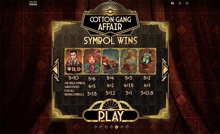 Таблица выплат Cotton Gang Affair