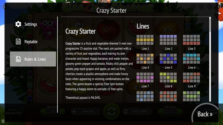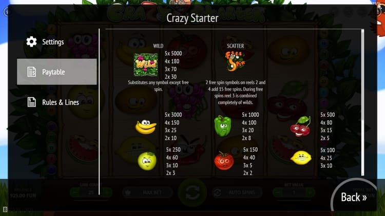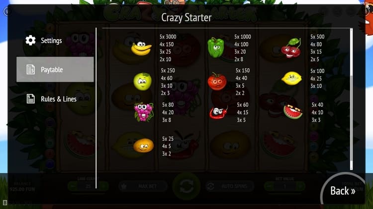 Таблица выплат Crazy Starter