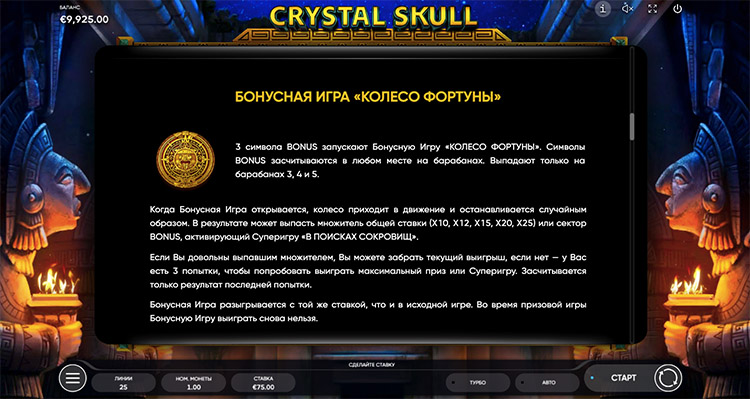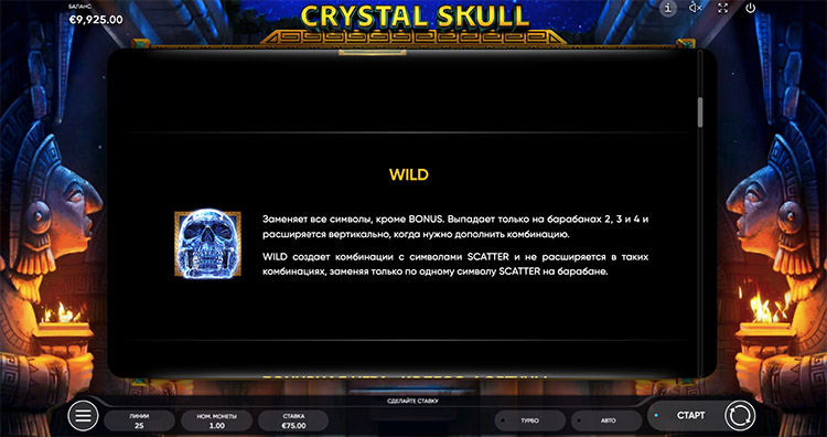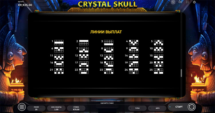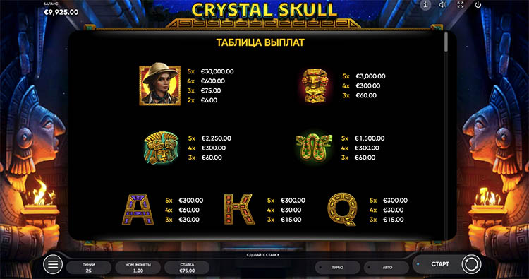 Таблица выплат Crystal Skull