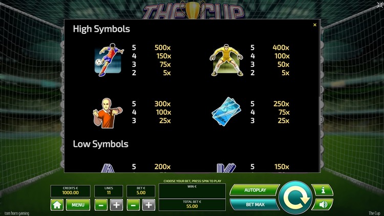 | Мяч (Wild) | 10 | 100 | 1 000 | 5 000 |