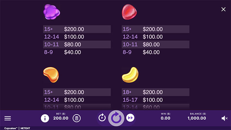 Таблица выплат Cupcakes