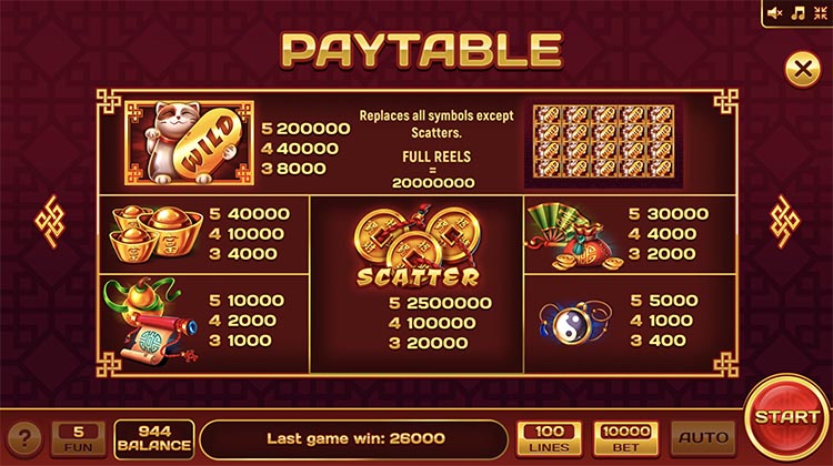 Таблица выплат Cute Cats