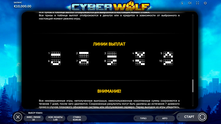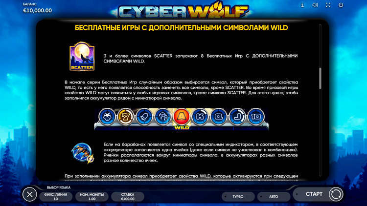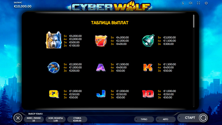 | Волк воет на луну (Scatter) | - | 200 | 2000 | 25 000 |