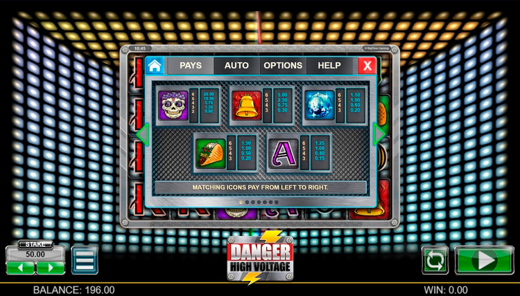 Таблица выплат Danger High Voltage
