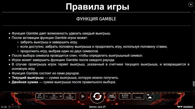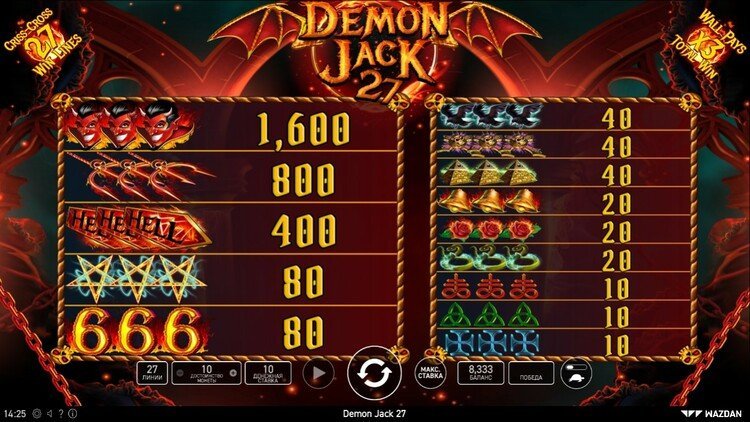 Таблица выплат Demon Jack 27