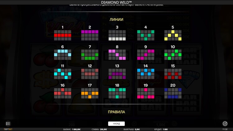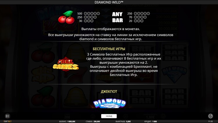 | Бриллиант (Wild) | 2 000 | 10 000 | 25 000 |