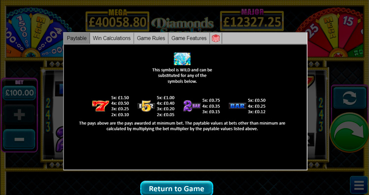 Таблица выплат Diamonds, Sapphires & Rubies