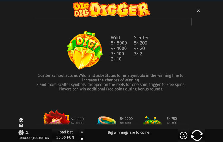 Таблица выплат Dig Dig Digger