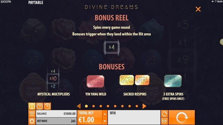 Таблица выплат Divine Dreams