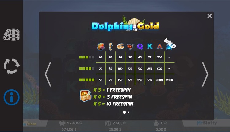 Таблица выплат Dolphins Gold