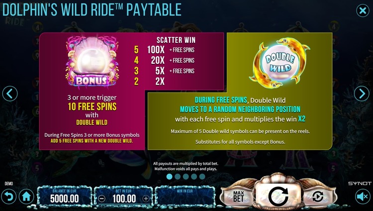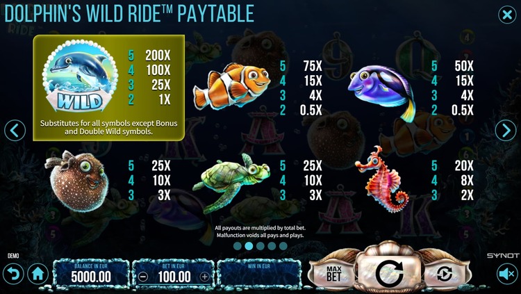 | Дельфин (Wild) | 1 | 25 | 100 | 200 |