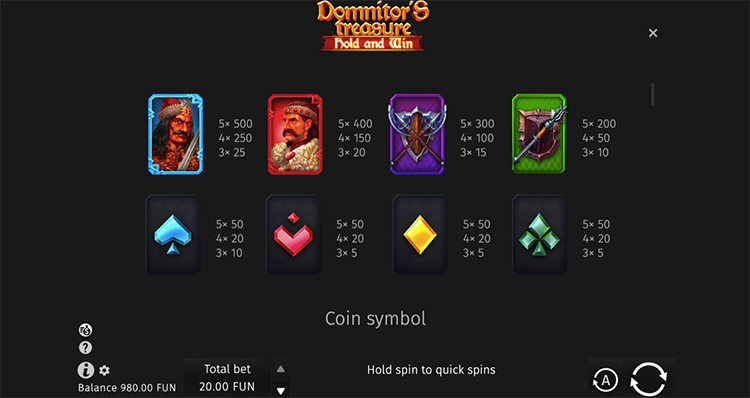 Таблица выплат Domnitor’s Treasure