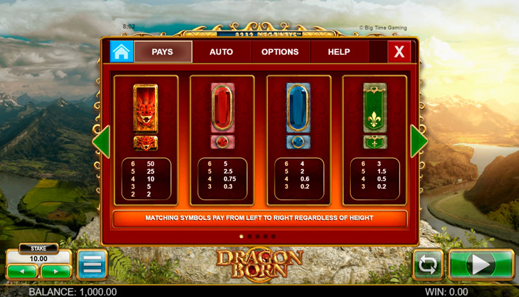 Таблица выплат Dragon Born
