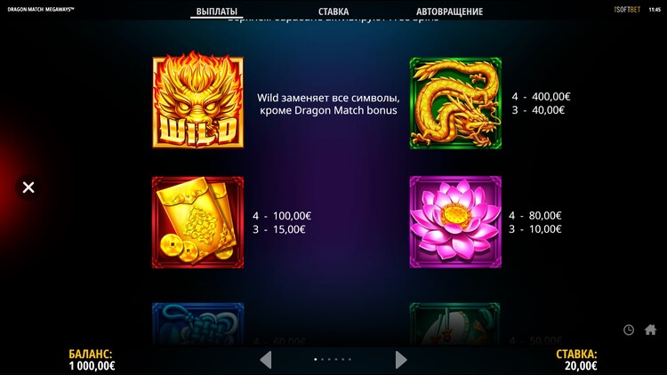 Таблица выплат Dragon Match Megaways