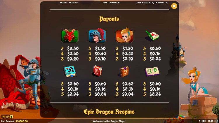 Таблица выплат Dragon Slayer