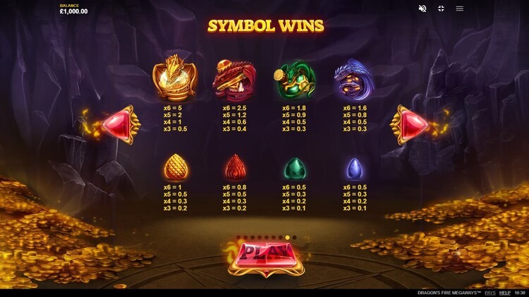 Таблица выплат Dragon’s Fire MegaWays