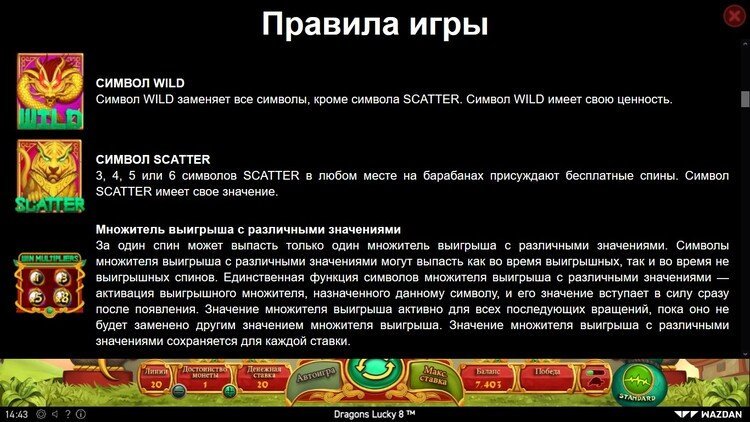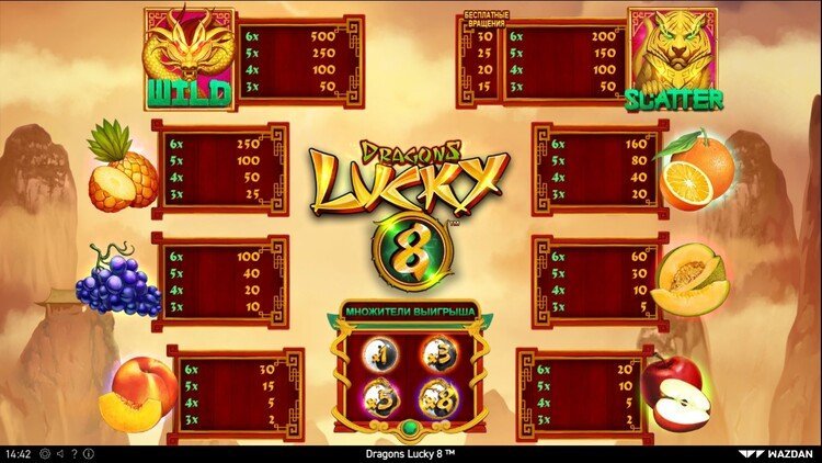 Таблица выплат Dragons Lucky 8