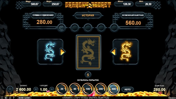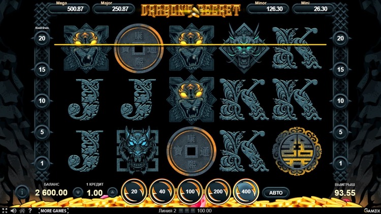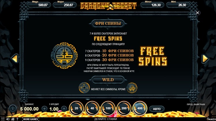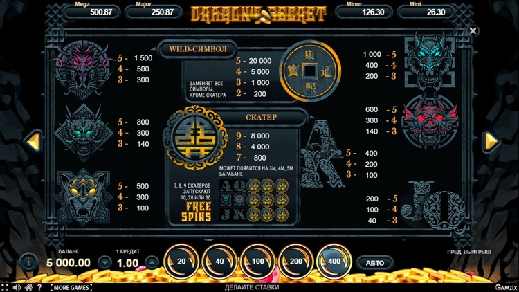 | Монета с иероглифами (Wild) | 200 | 1 000 | 5 000 | 20 000 |