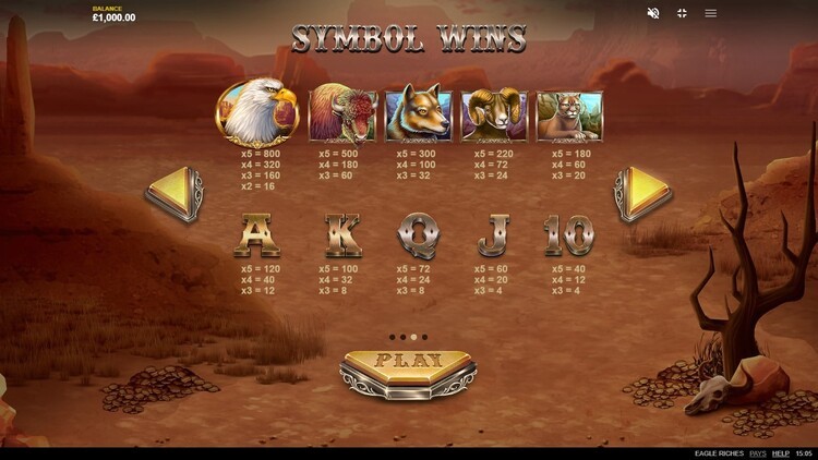 Таблица выплат Eagle Riches