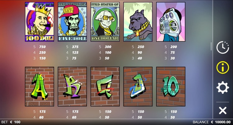 | 10, J, Q | 20 | 50 | 150 |
