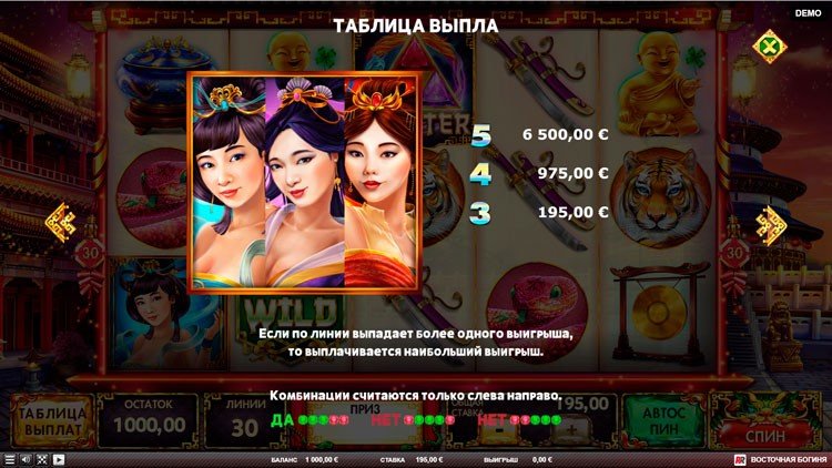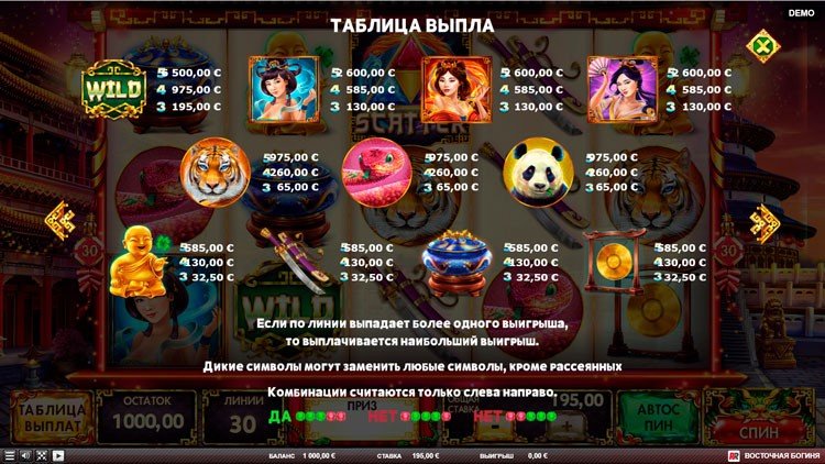 Таблица выплат Eastern Goddesses