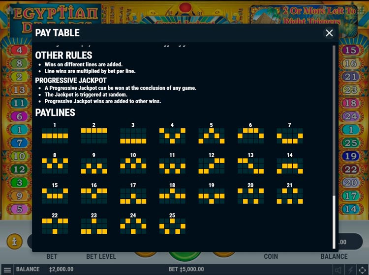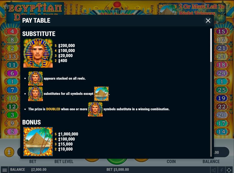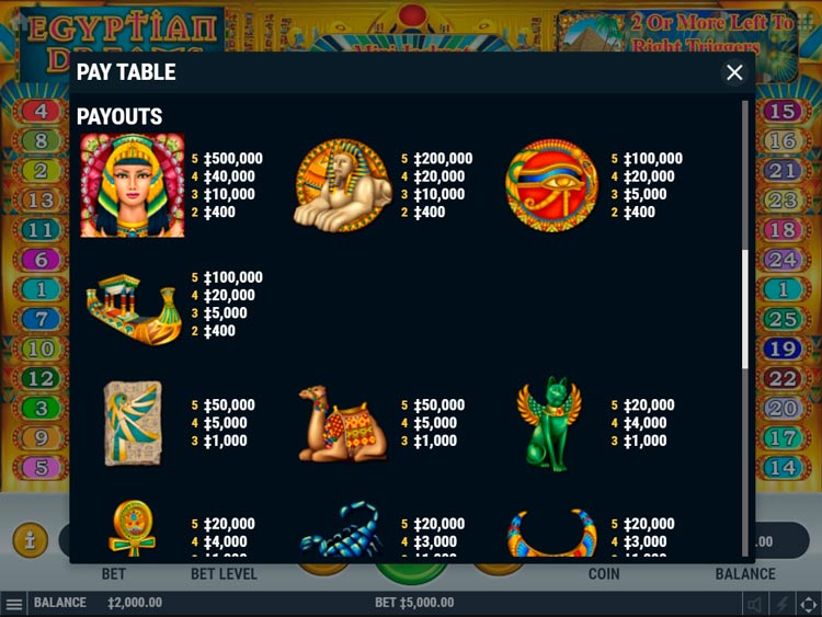Таблица выплат Egyptian Dreams