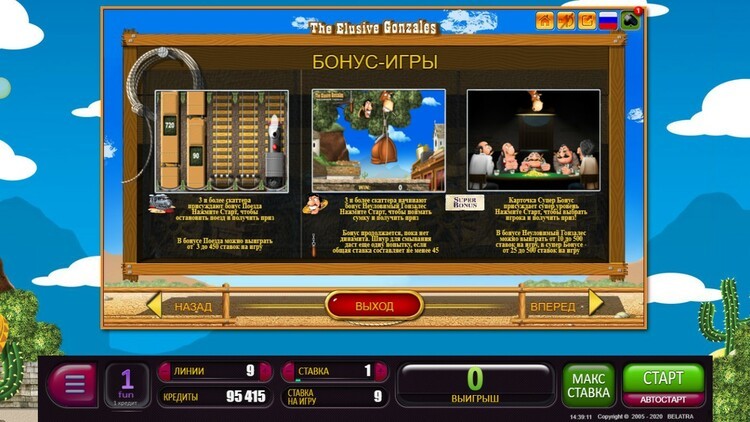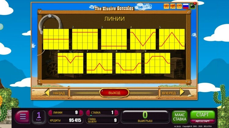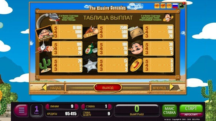 Таблица выплат The Elusive Gonzales