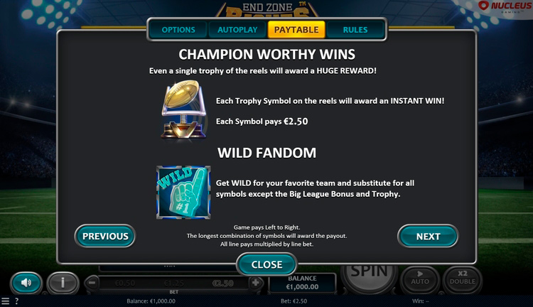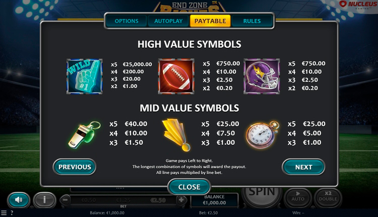 | Герб команды (Scatter) | - | 12,5 | 50 | 250 |