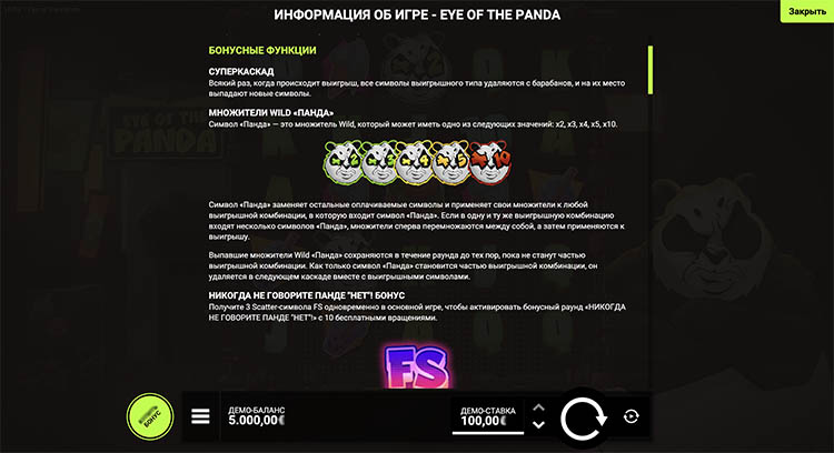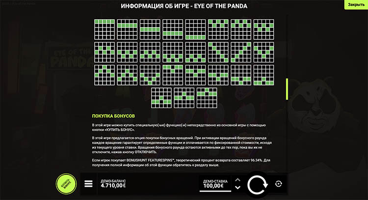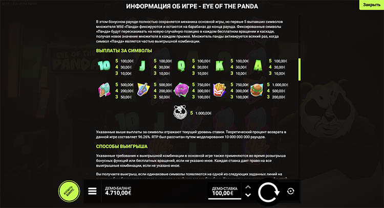 Таблица выплат Eye of the Panda