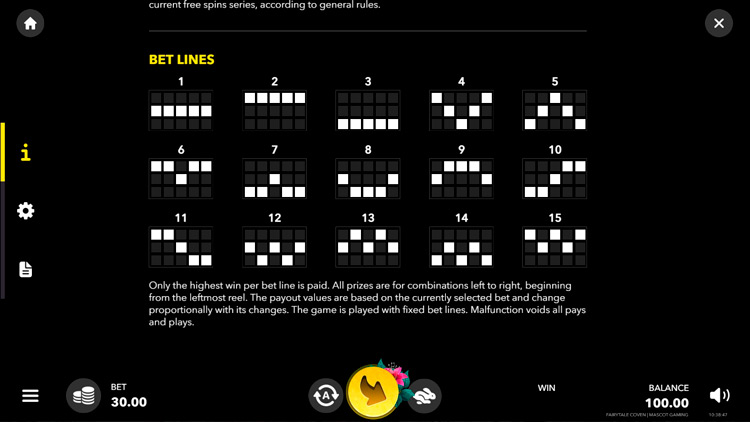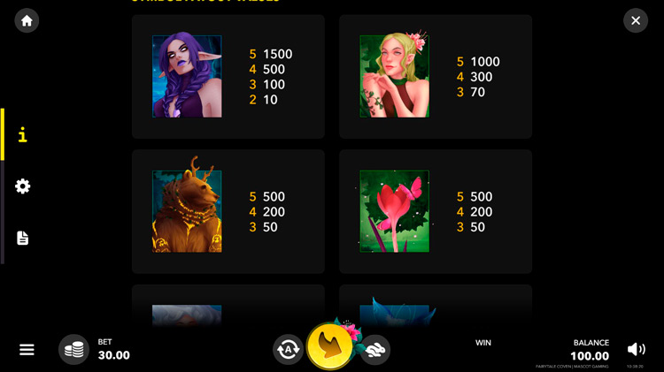Таблица выплат Fairytale Coven