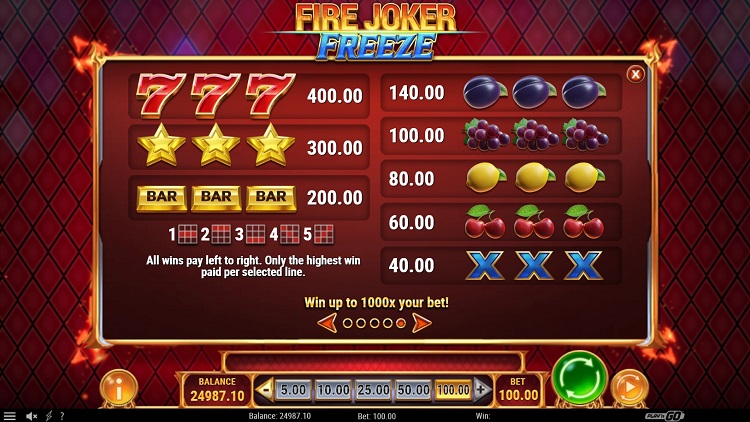 Таблица выплат Fire Joker Freeze