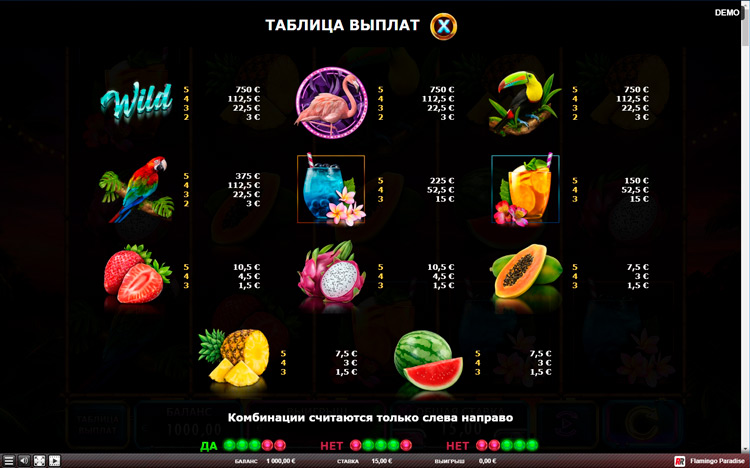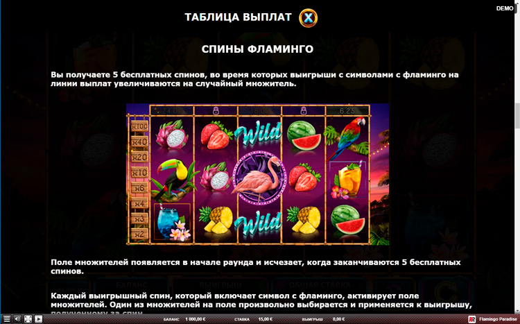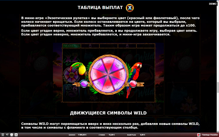 Таблица выплат Flamingo Paradise