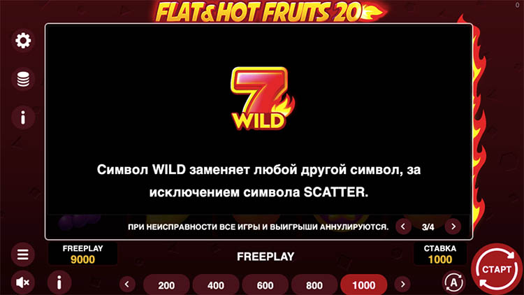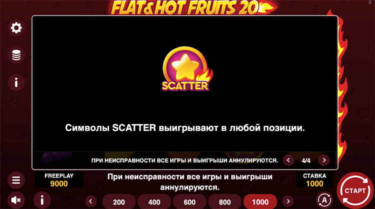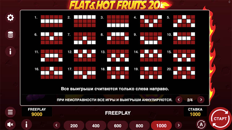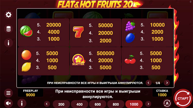 Таблица выплат Flat & Hot Fruits 20