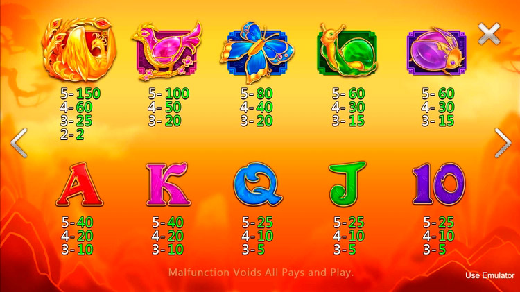 Таблица выплат Flower Fortunes