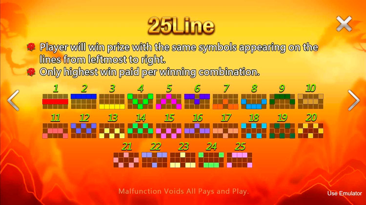 | 10, J, Q | - | 5 | 10 | 25 |