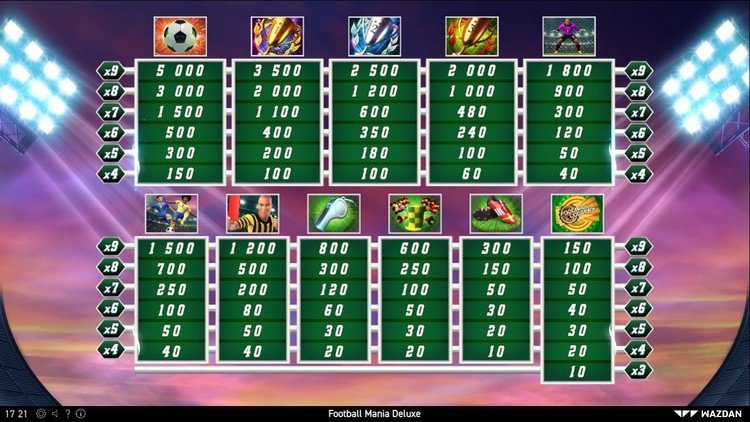 | Футболисты | - | 40 | 50 | 100 | 250 | 700 | 1500 |
