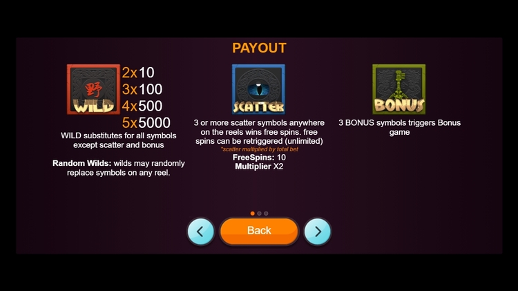 | Красный иероглиф (Wild) | 10 | 100 | 500 | 5 000 |