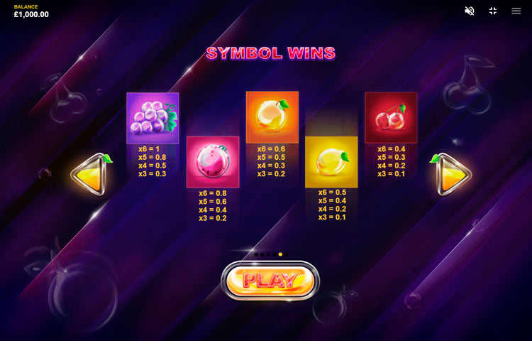 Таблица выплат Fruit Blox