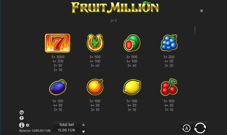 Таблица выплат Fruit Million