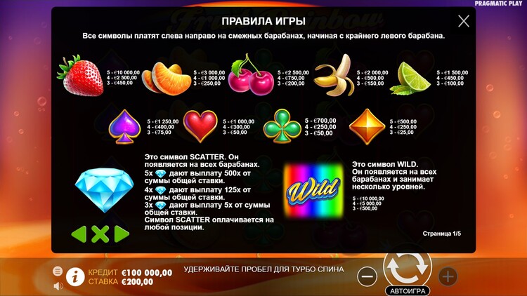 | Радуга (Wild) | 500 | 5 000 | 10 000 |
