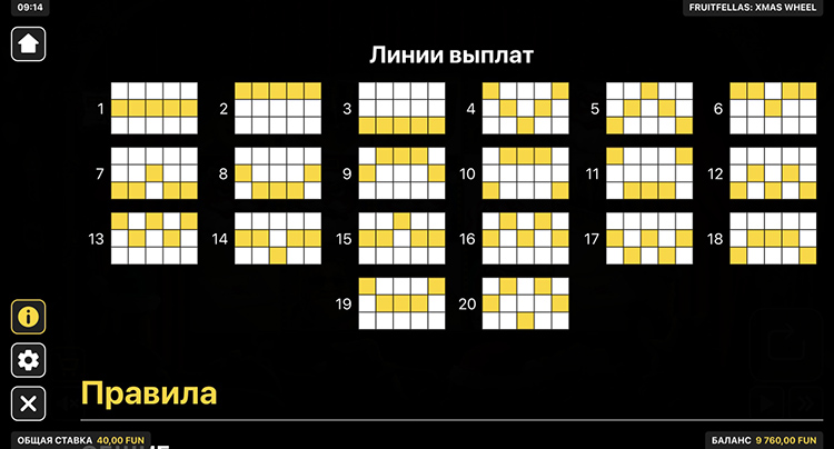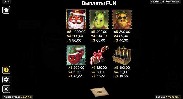 Таблица выплат Fruitfellas: Xmas Wheel
