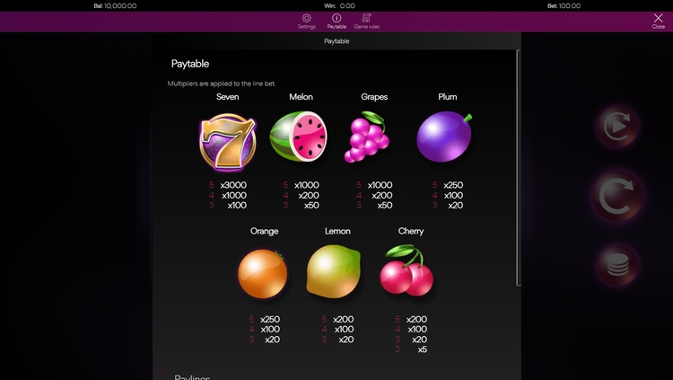 Таблица выплат Fruits & 777’s