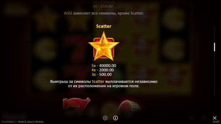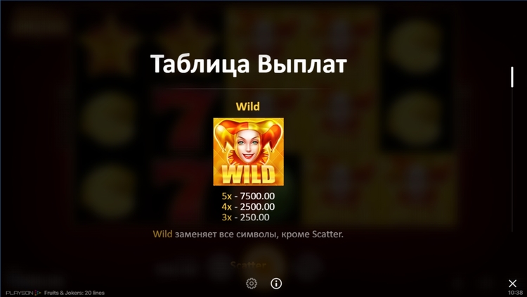 | Джокер (Wild) | 250 | 2 500 | 7 500 |
