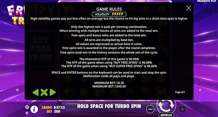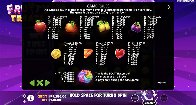 Таблица выплат Fruity Treats