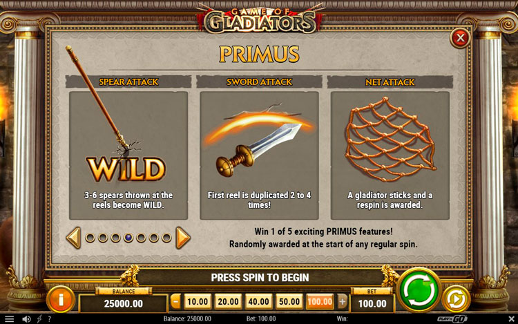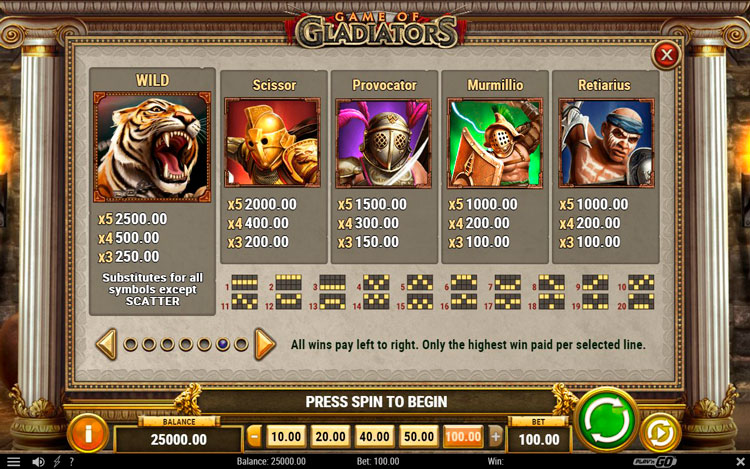 Таблица выплат Game of Gladiators