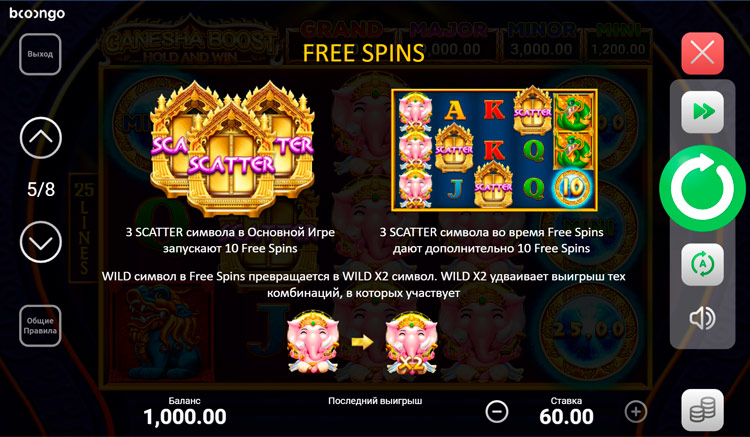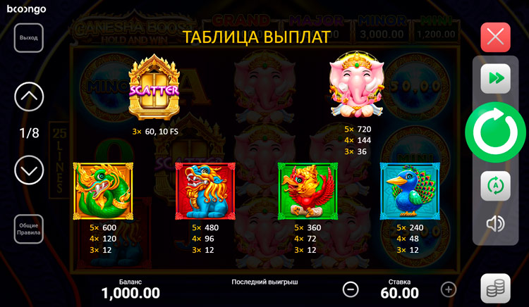 Таблица выплат Ganesha Boost