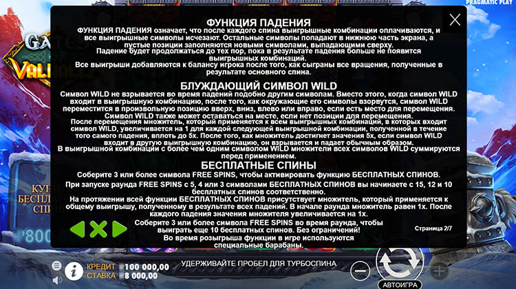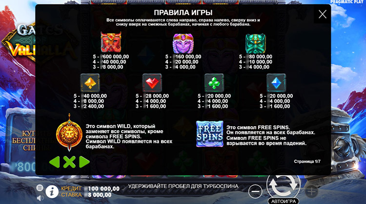 Таблица выплат Gates of Valhalla