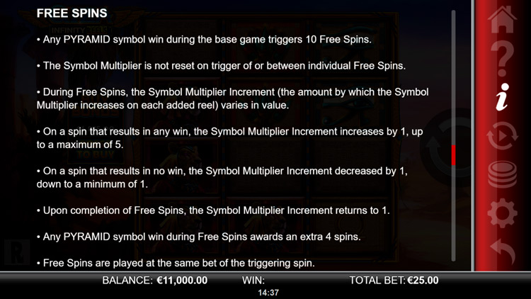 Таблица выплат Giza Infinity Reels