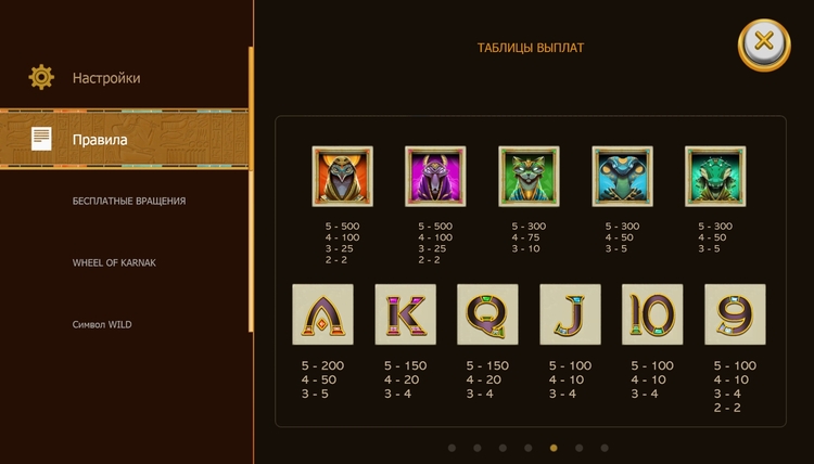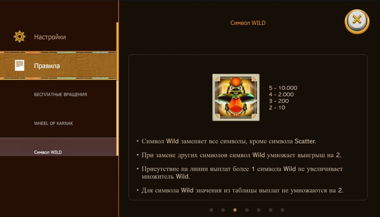 | Скарабей (Wild) | 10 | 200 | 2 000 | 10 000 |
