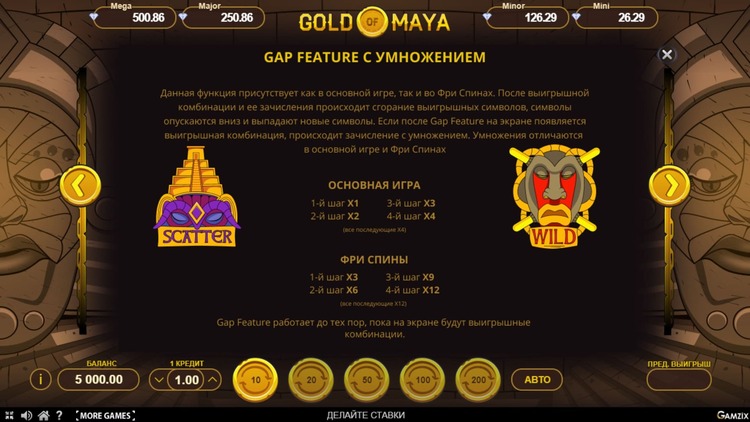 Таблица выплат Gold of Maya